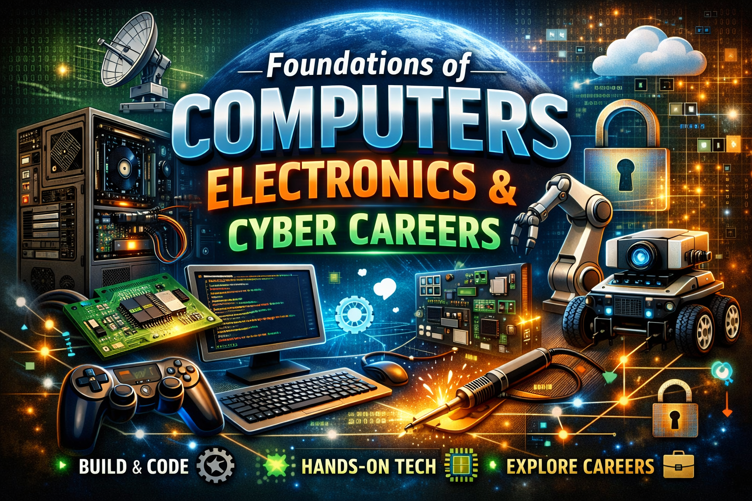 Falcon AeroLab Cyber Courses for students ages 12+ are opportunities for students to explore various focus areas within the wide discipline of “Cyber”. Each focus area allows students with common interests to work in groups toward their shared goals.